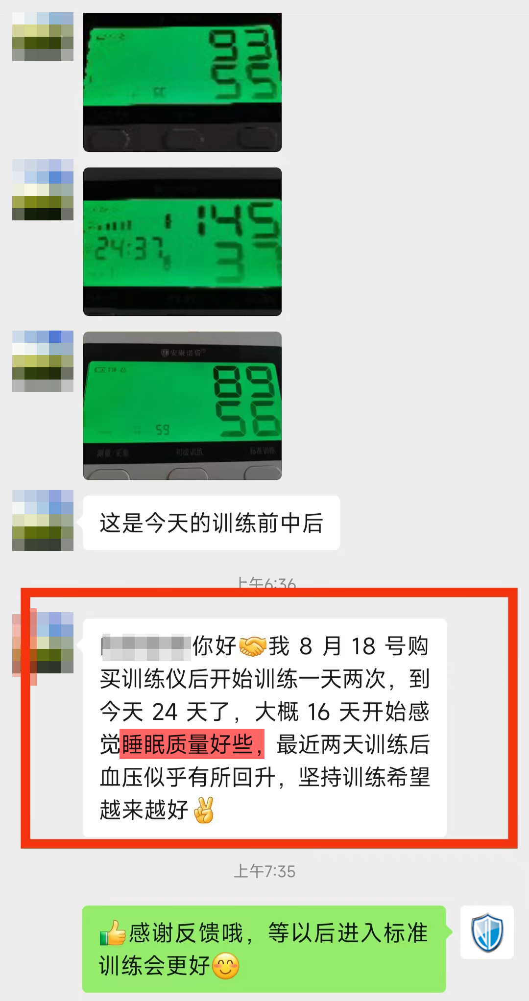 憑借其優(yōu)越的產(chǎn)品性能,卓越的使用效果,安康諾盾預(yù)適應(yīng)訓(xùn)練儀已經(jīng)成為了眾多心腦血管患者的福音,并且積累了良好的用戶口碑:
